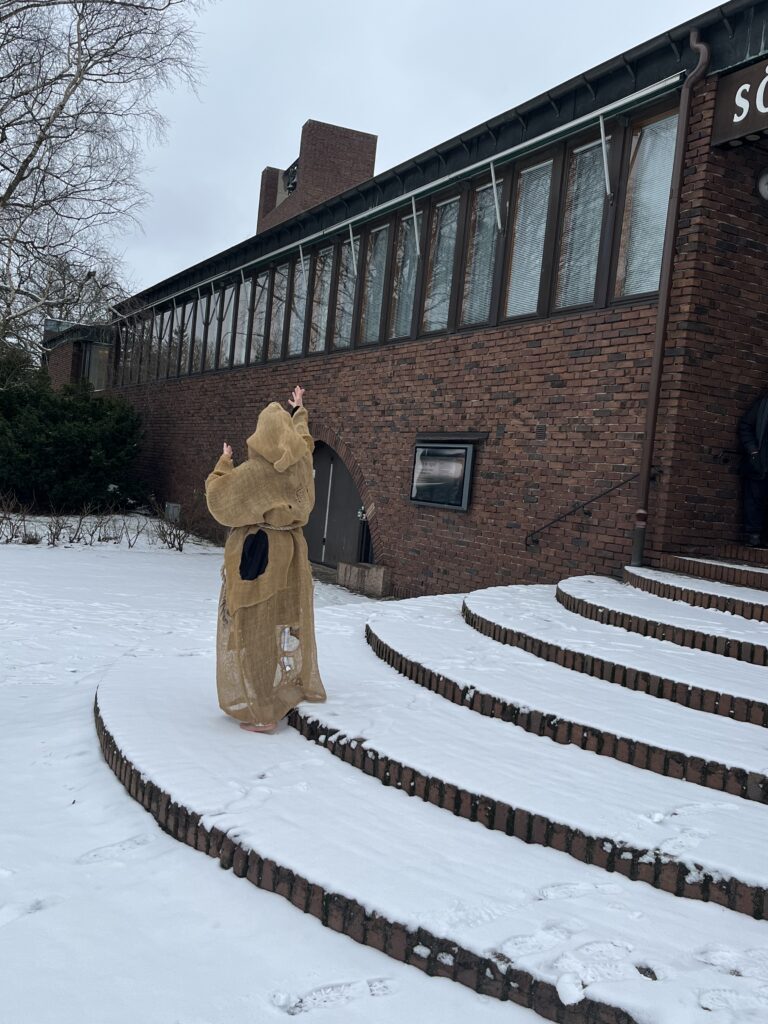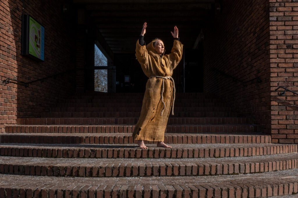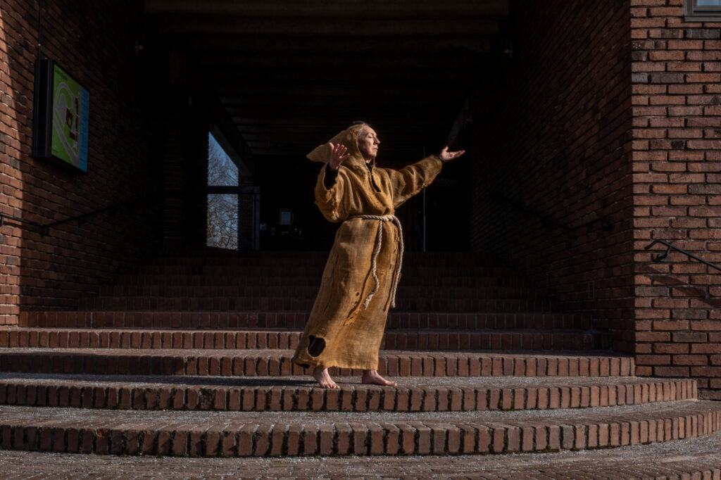 Performance in Lund’s Cathedral. St Francis was a radical monk in the 1200’s. Barefoot, dressed in rags, he practiced “doing mercy” (active empathy) to the poor and the powerless. The performance invoked his spirit to commemorate martyrs in today’s China.