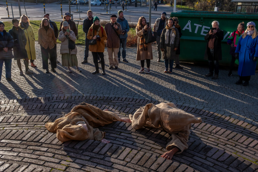Barefoot procession from Konsthall C with participants from the conference “Noise in Public Space”